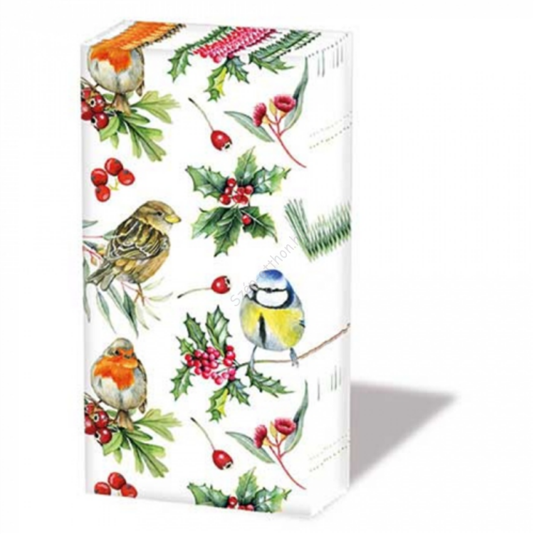 Karácsonyi papírzsebkendő 10db-os - Sparrows in wreath