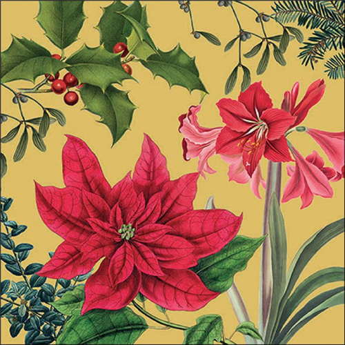 Christmas plants gold papírszalvéta 33x33cm, 20db-os