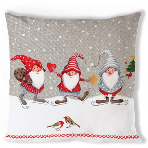 Karácsonyi pamut párnahuzat - 40x40cm - Skating Dwarfs