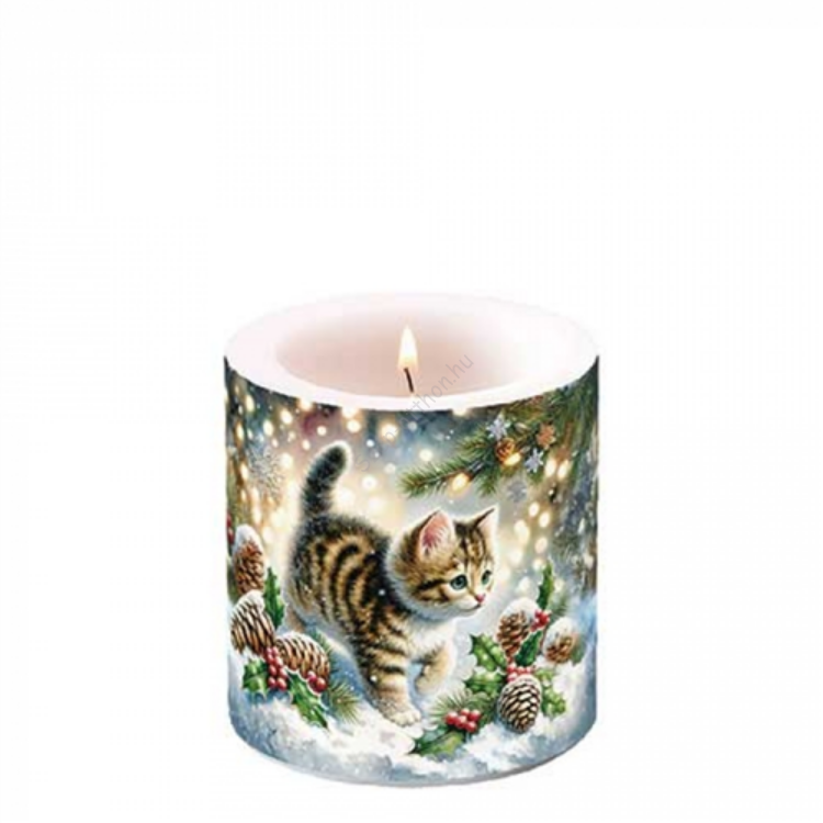 Cute cat in the snow átvilágítós gyertya 8x7,5cm