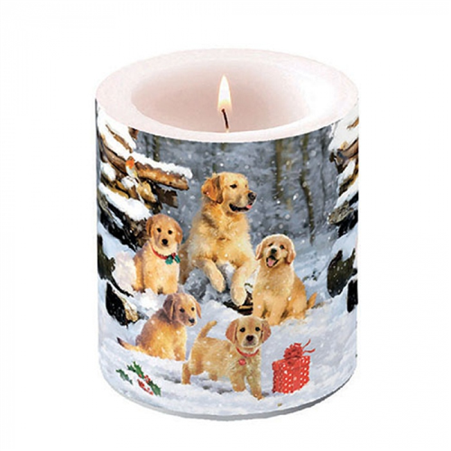 Karácsonyi ávilágítós gyertya 8x7,5cm Golden retriever