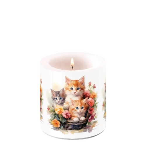 Cicás átvilágítós gyertya 10x10cm Kittens in basket