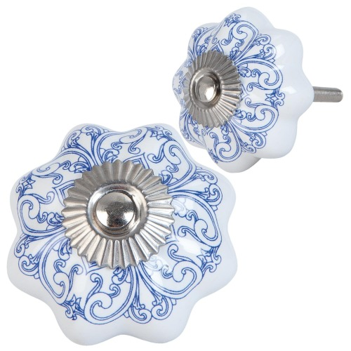 Ajtófogantyú Kerámia, Fehér Színű Világos Szürke Mintával