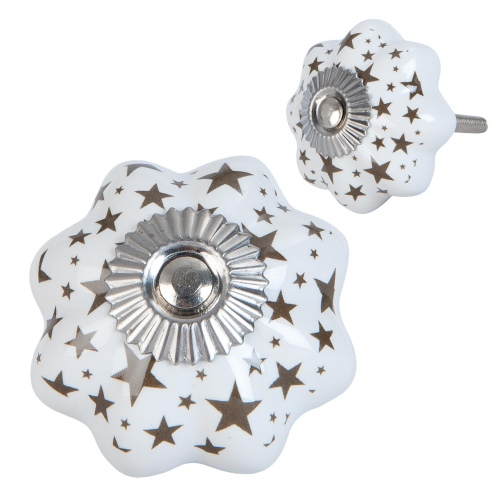 Ajtófogantyú Kerámia, Fehér Színű Világos Szürke Mintával