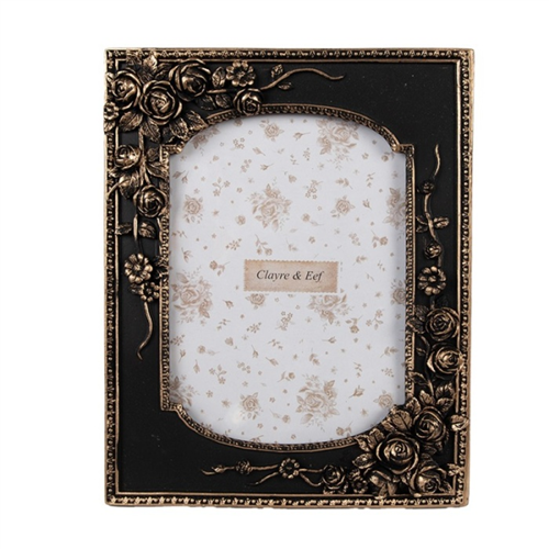 Fekete képkeret rózsás, arany antikolással