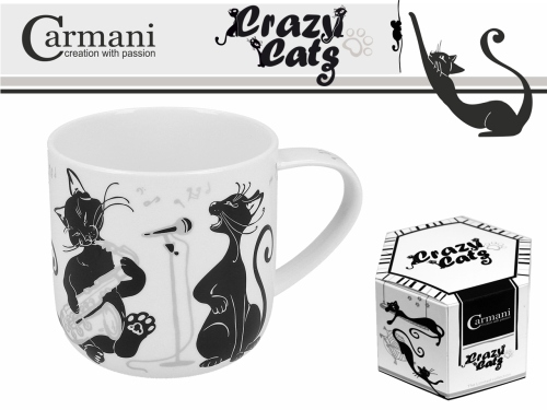 Porcelán bögre - 500ml - fekete macskás, zenés