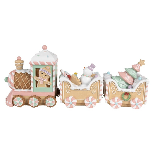 Mézeskalács Merry Christmas házsor színes, 13x4x10cm, műanyag dekorfigura