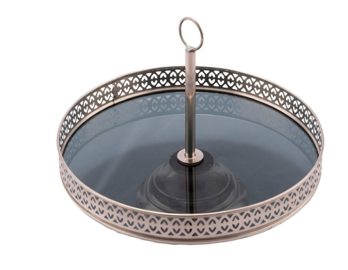 Asztali kínáló - ezüst színű - fém, üvegbetéttel